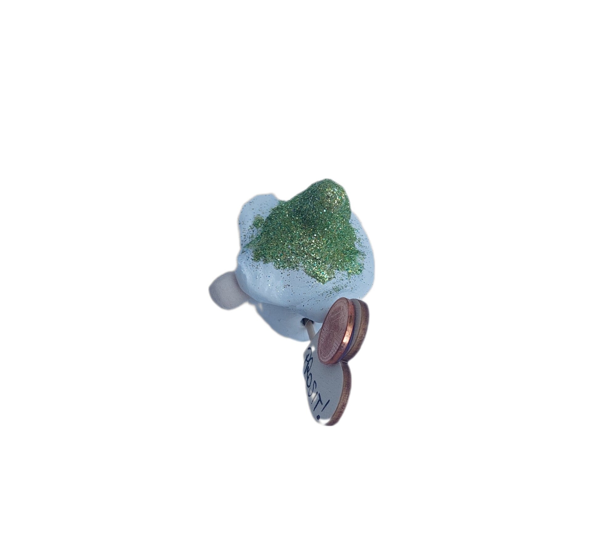 Material: Modeliermaße, Farbe, Glitzer, Zahnstocher, Heißkleber, Holzherz, 1 Stk Cent-Münze