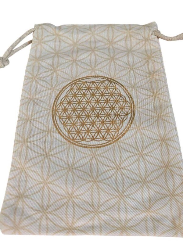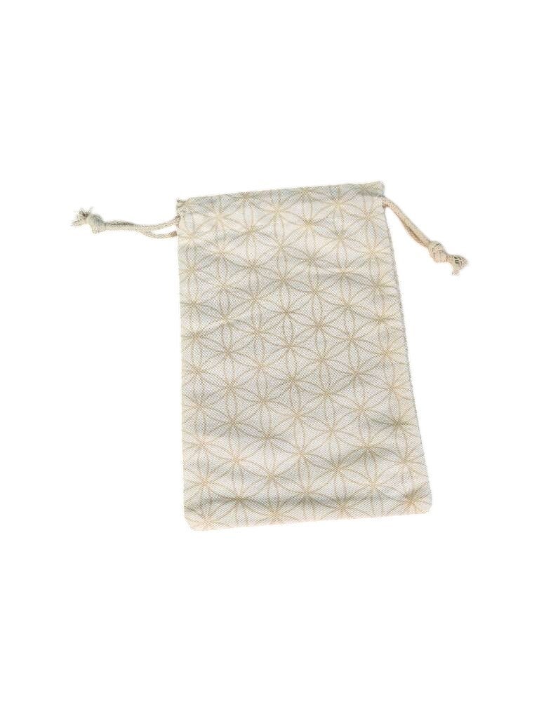 Baumwolltasche/Beuteltasche/Geschenkssackerl mit Blume des Lebens weiß/gold.