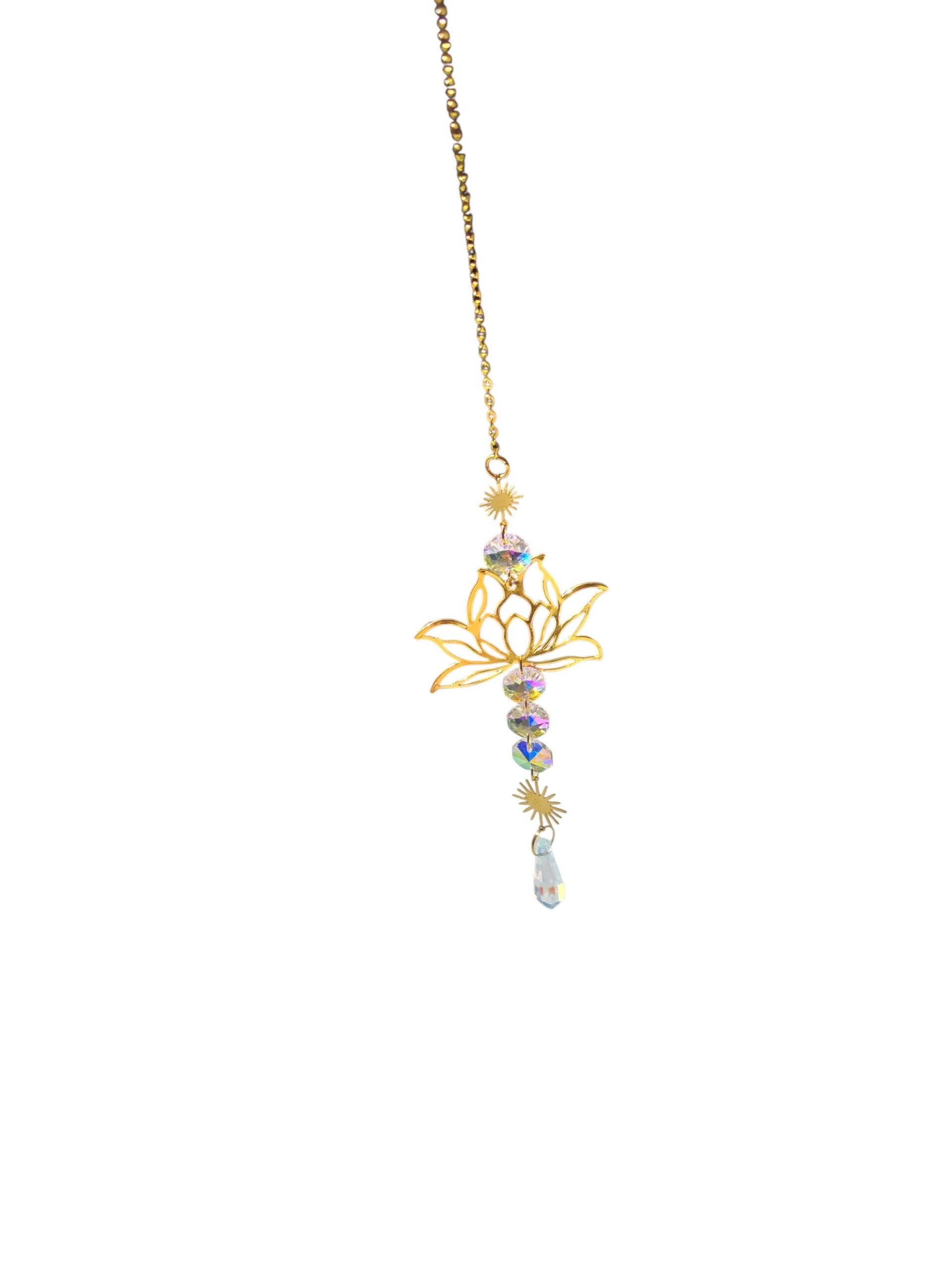 Sonnenfänger/Suncatcher/Fensterdekoration "Lotus" gold/kristall