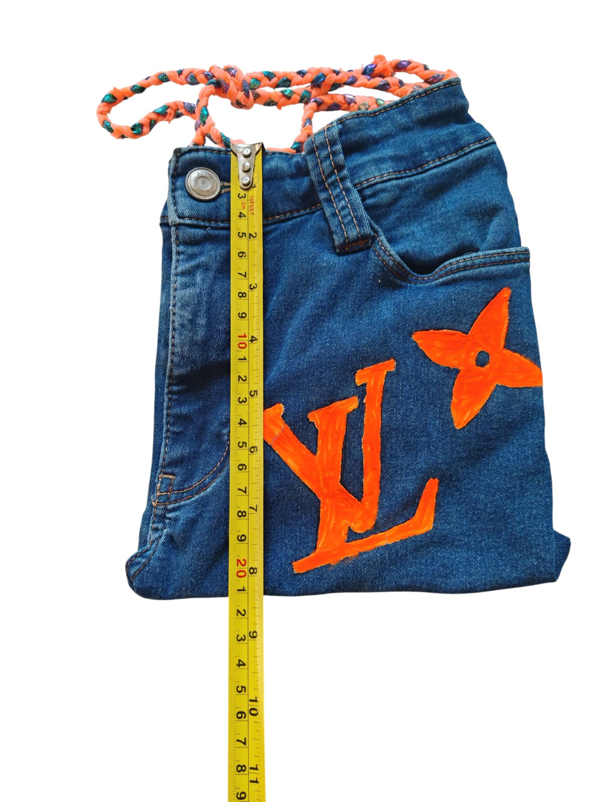 Upgecycelte Jeans-Tasche/Cross-Body "LV neonorange"