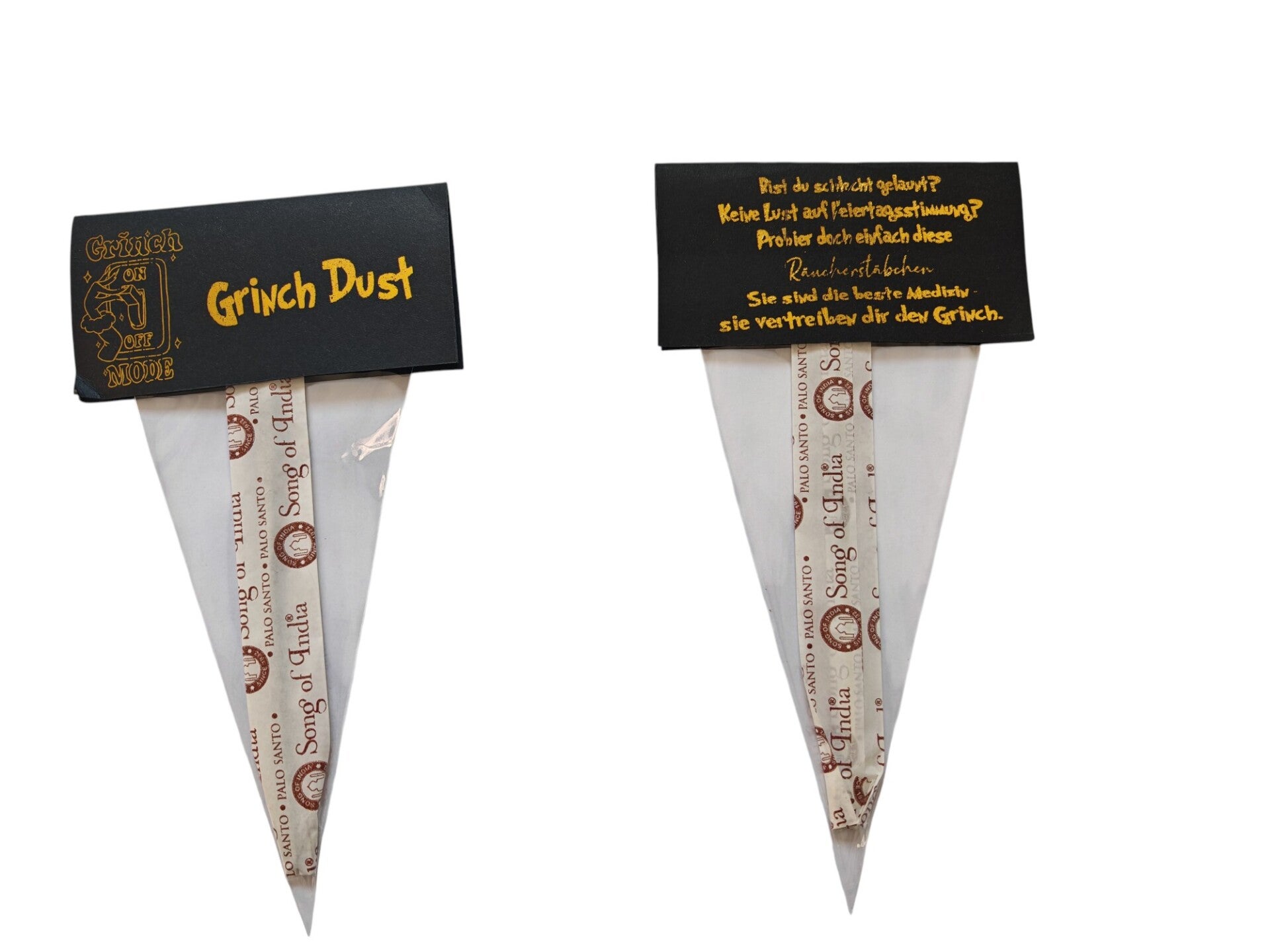 mit liebevoll vergoldetem "Grinch Dust/Grinch Mode" - Bist du schlecht gelaunt? Keine Lust auf Feiertagsstimmung? Probier doch einfach diese Räucherstäbchen Sie sind die beste Medizin - sie vertreiben dir den Grinch.