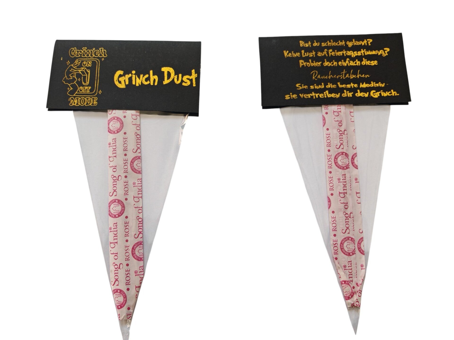 mit liebevoll vergoldetem "Grinch Dust/Grinch Mode" - Bist du schlecht gelaunt? Keine Lust auf Feiertagsstimmung? Probier doch einfach diese Räucherstäbchen Sie sind die beste Medizin - sie vertreiben dir den Grinch.