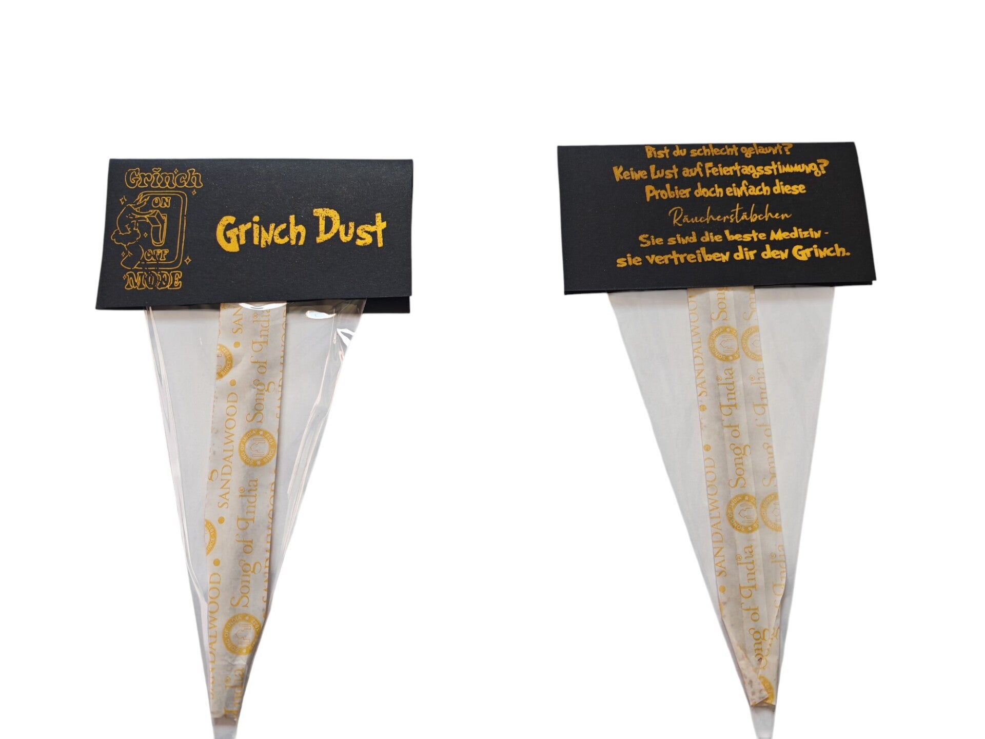 mit liebevoll vergoldetem "Grinch Dust/Grinch Mode" - Bist du schlecht gelaunt? Keine Lust auf Feiertagsstimmung? Probier doch einfach diese Räucherstäbchen Sie sind die beste Medizin - sie vertreiben dir den Grinch.