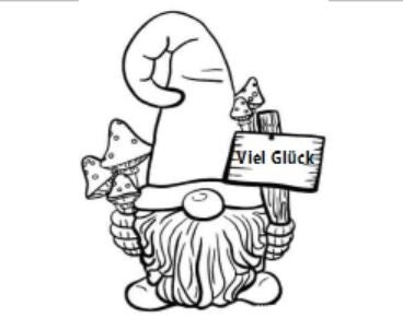 mit liebevoll vergoldetem Wichtel/Gnom (Silvester) "Viel Glück".