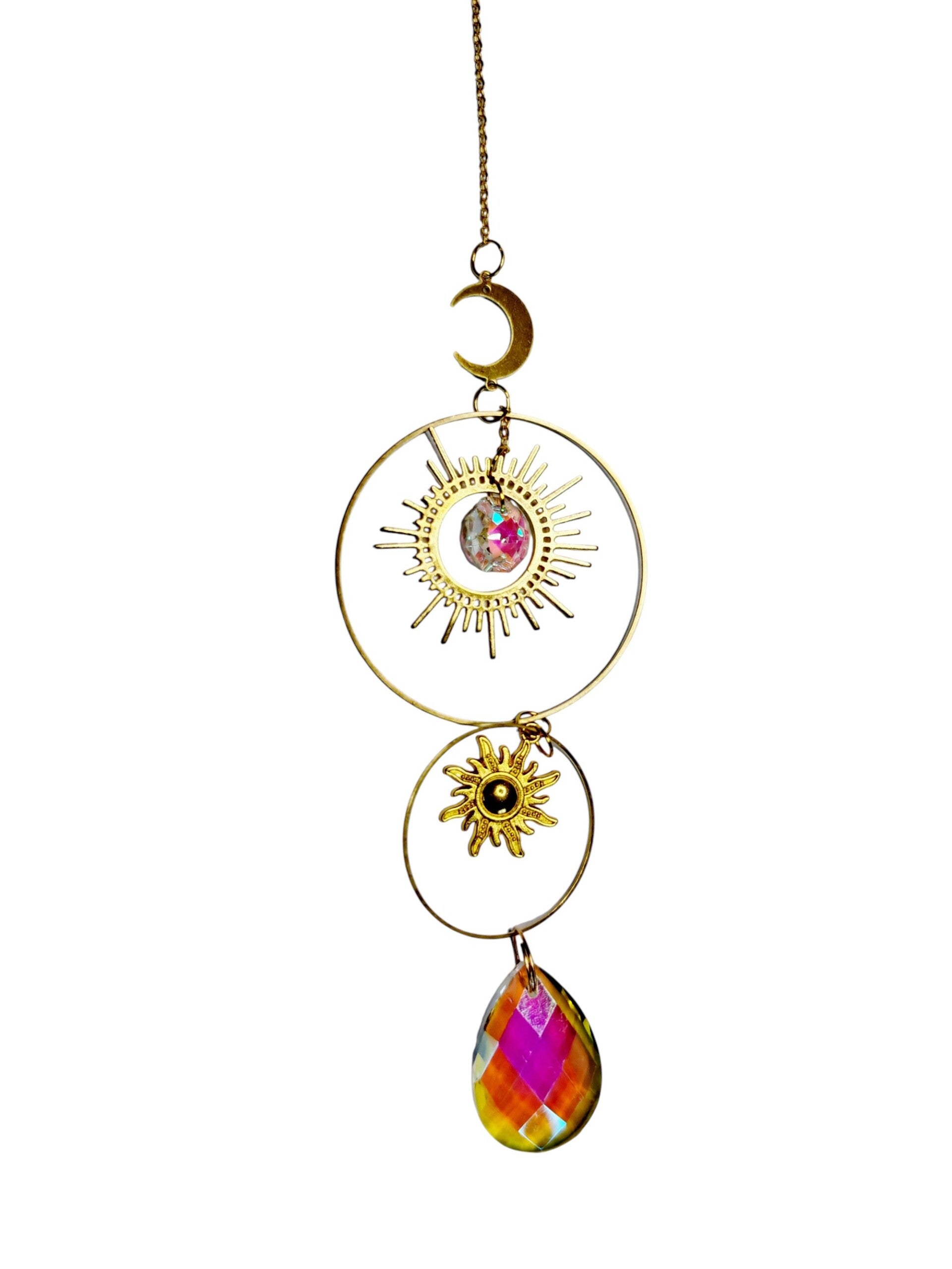Sonnenfänger/Suncatcher/Fensterdekoration "Sonne/Mond" gold
