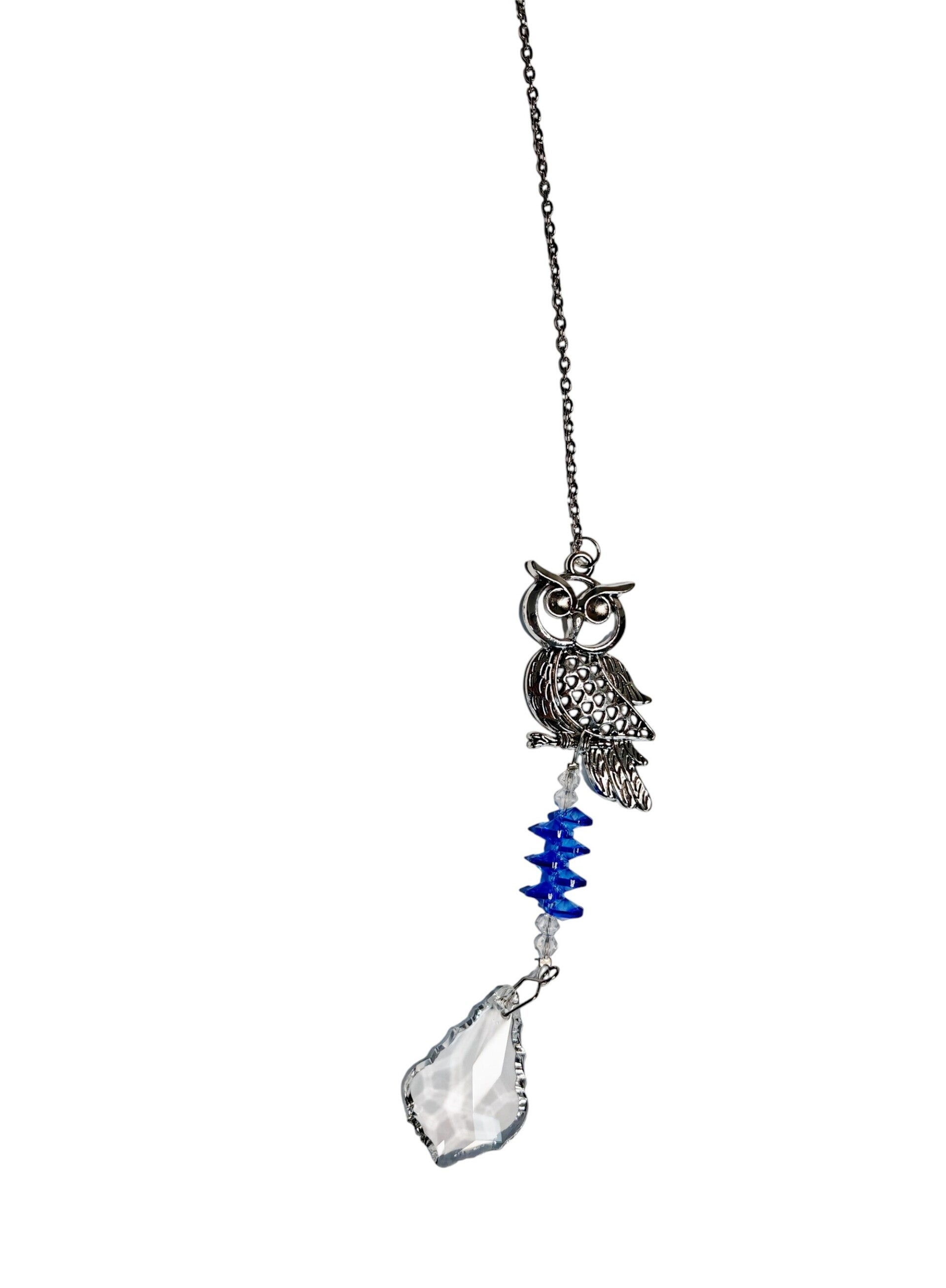 Sonnenfänger/Suncatcher/Fensterdekoration "Eule" silber/blau