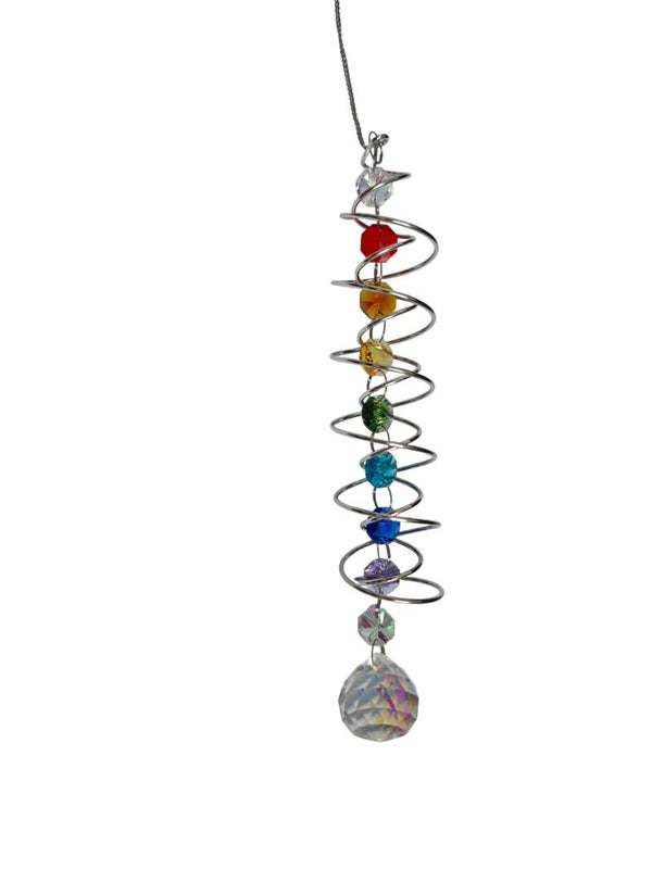 Sonnenfänger/Suncatcher/Fensterdekoration "Spirale" chakrafarben/silber